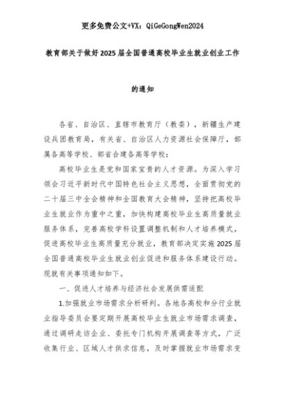 【七哥公文】2025年:教育部关于做好2025届全国普通高校毕业生就业创业工作的通知+更多免费公文+VX:QiGeGongWen2024+更多免费公文+VX:QiGeGongWen2024