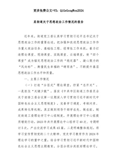 【七哥公文】2025年:某街道关于思想政治工作情况的报告+更多免费公文+VX:QiGeGongWen2024+更多免费公文+VX:QiGeGongWen2024
