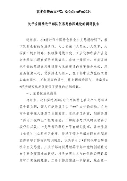 【七哥公文】2025年:关于全面推进干部队伍思想作风建设的调研报告+更多免费公文+VX:QiGeGongWen2024+更多免费公文+VX:QiGeGongWen2024