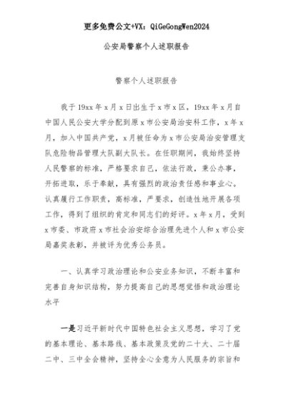 【七哥公文】2025年:公安局警察个人述职报告+更多免费公文+VX:QiGeGongWen2024+更多免费公文+VX:QiGeGongWen2024