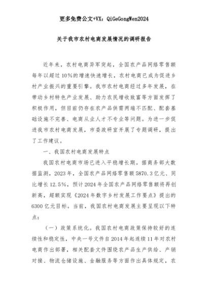 【七哥公文】2025年:关于我市农村电商发展情况的调研报告+更多免费公文+VX:QiGeGongWen2024+更多免费公文+VX:QiGeGongWen2024