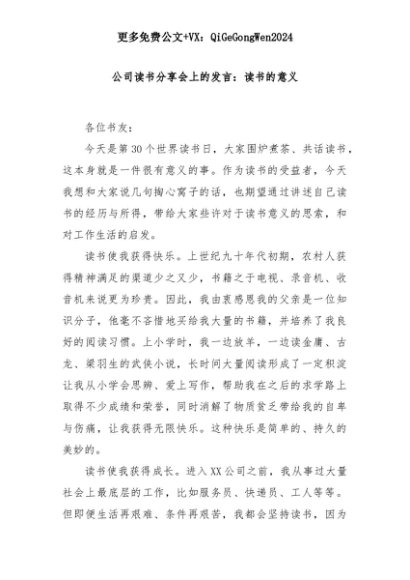 【七哥公文】2025年:公司读书分享会上的发言:读书的意义+更多免费公文+VX:QiGeGongWen2024+更多免费公文+VX:QiGeGongWen2024