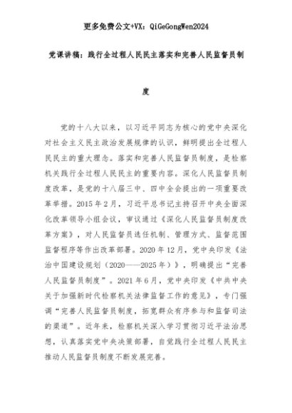 【七哥公文】2025年:党课讲稿:践行全过程人民民主落实和完善人民监督员制度+更多免费公文+VX:QiGeGongWen2024+更多免费公文+VX:QiGeGongWen2024