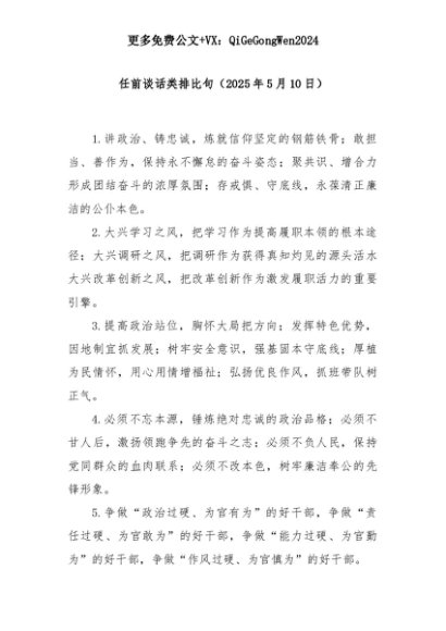 【七哥公文】2025年:任前谈话类排比句(2025年5月10日)+更多免费公文+VX:QiGeGongWen2024+更多免费公文+VX:QiGeGongWen2024