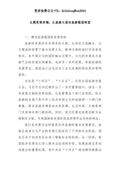 【七哥公文】2025年:主题党课讲稿:从旅游大国向旅游强国转型+更多免费公文+VX:QiGeGongWen2024+更多免费公文+VX:QiGeGongWen2024