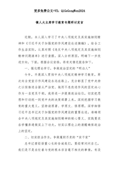 【七哥公文】2025年:镇人大主席学习教育专题研讨发言+更多免费公文+VX:QiGeGongWen2024+更多免费公文+VX:QiGeGongWen2024