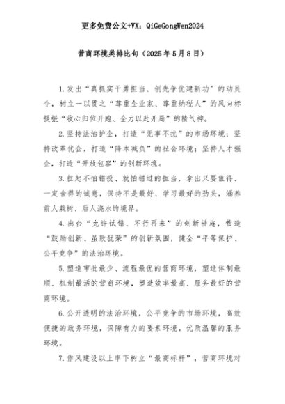 【七哥公文】2025年:营商环境类排比句(2025年5月8日)+更多免费公文+VX:QiGeGongWen2024+更多免费公文+VX:QiGeGongWen2024