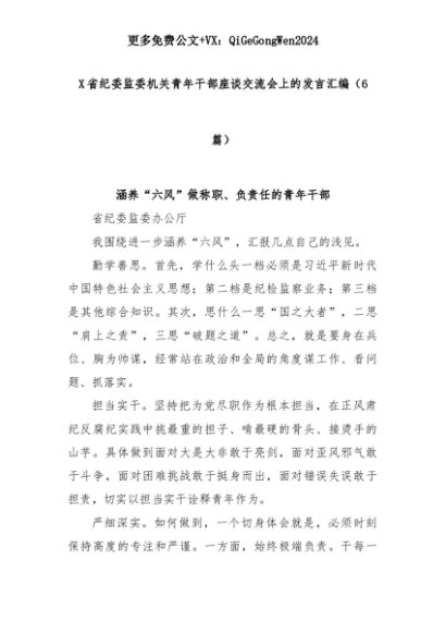 【七哥公文】2025年:(6篇)X省纪委监委机关青年干部座谈交流会上的发言汇编+更多免费公文+VX:QiGeGongWen2024+更多免费公文+VX:QiGeGongWen2024