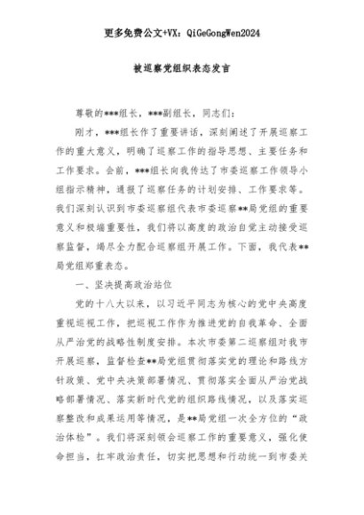 【七哥公文】2025年:被巡察党组织表态发言+更多免费公文+VX:QiGeGongWen2024+更多免费公文+VX:QiGeGongWen2024