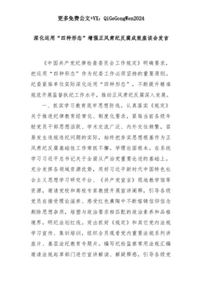 【七哥公文】2025年:深化运用“四种形态”增强正风肃纪反腐成效座谈会发言+更多免费公文+VX:QiGeGongWen2024+更多免费公文+VX:QiGeGongWen2024