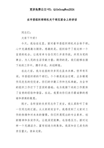 【七哥公文】2025年:在市委组织部部机关干部见面会上的讲话+更多免费公文+VX:QiGeGongWen2024+更多免费公文+VX:QiGeGongWen2024
