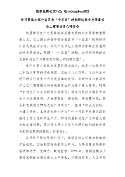 【七哥公文】2025年:学习贯彻在部分省区市“十五五”时期经济社会发展座谈会上重要讲话心得体会+更多免费公文+VX:QiGeGongWen2024+更多免费公文+VX:QiGeGongWen2024