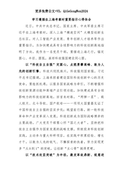 【七哥公文】2025年:学习遵循在上海考察时重要指示心得体会+更多免费公文+VX:QiGeGongWen2024+更多免费公文+VX:QiGeGongWen2024