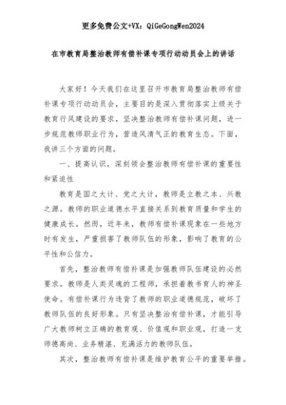 【七哥公文】2025年:在市教育局整治教师有偿补课专项行动动员会上的讲话+更多免费公文+VX:QiGeGongWen2024+更多免费公文+VX:QiGeGongWen2024