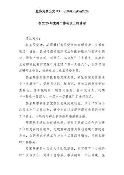 【七哥公文】2025年:在2025年党建工作会议上的讲话+更多免费公文+VX:QiGeGongWen2024+更多免费公文+VX:QiGeGongWen2024