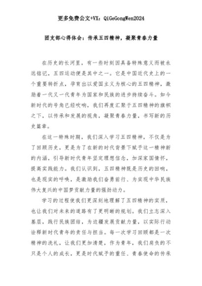 【七哥公文】2025年:团支部心得体会:传承五四精神,凝聚青春力量+更多免费公文+VX:QiGeGongWen2024+更多免费公文+VX:QiGeGongWen2024