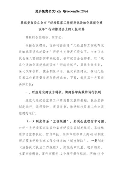 【七哥公文】2025年:县纪委监委在全市“纪检监察工作规范化法治化正规化建设年”行动推进会上的汇报材料+更多免费公文+VX:QiGeGongWen2024+更多免费公文+VX:QiGeGongWen2024