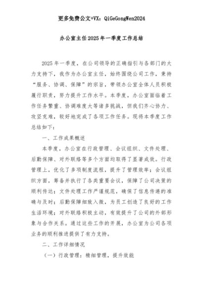 【七哥公文】2025年:办公室主任2025年一季度工作总结+更多免费公文+VX:QiGeGongWen2024+更多免费公文+VX:QiGeGongWen2024