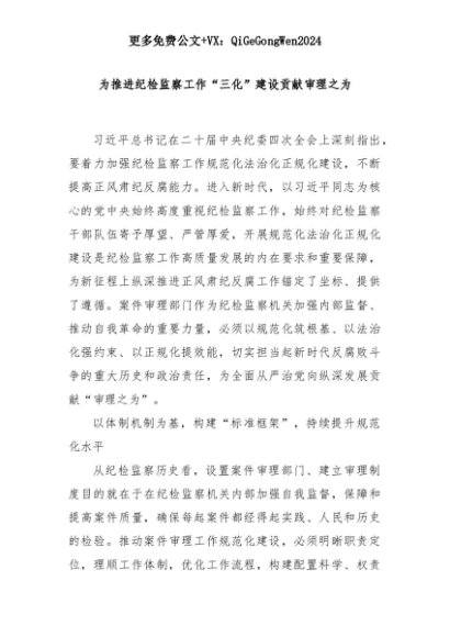 【七哥公文】2025年:为推进纪检监察工作“三化”建设贡献审理之为+更多免费公文+VX:QiGeGongWen2024+更多免费公文+VX:QiGeGongWen2024