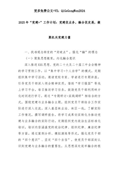 【七哥公文】2025年:2025年“党建+”工作计划:党建促业务,融合促发展,凝聚机关党建力量+更多免费公文+VX:QiGeGongWen2024+更多免费公文+VX:QiGeGongWen2024