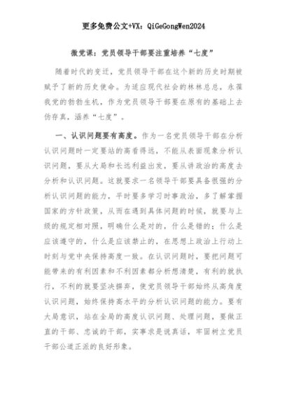 【七哥公文】2025年:微党课:党员领导干部要注重培养“七度”+更多免费公文+VX:QiGeGongWen2024+更多免费公文+VX:QiGeGongWen2024