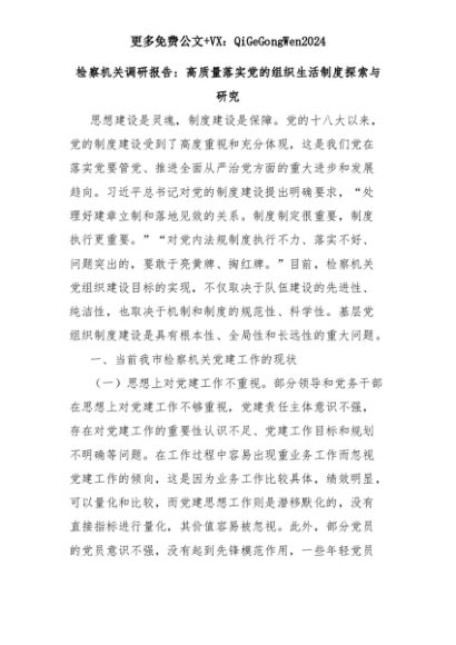 【七哥公文】2025年:检察机关调研报告:高质量落实党的组织生活制度探索与研究+更多免费公文+VX:QiGeGongWen2024+更多免费公文+VX:QiGeGongWen2024