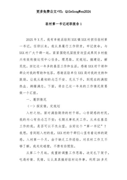 【七哥公文】2025年:驻村第一书记述职报告1+更多免费公文+VX:QiGeGongWen2024+更多免费公文+VX:QiGeGongWen2024