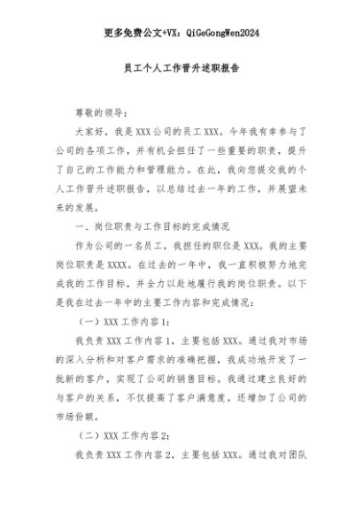 【七哥公文】2025年:员工个人工作晋升述职报告+更多免费公文+VX:QiGeGongWen2024+更多免费公文+VX:QiGeGongWen2024