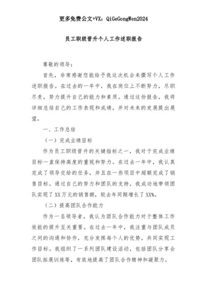 【七哥公文】2025年:员工职级晋升个人工作述职报告+更多免费公文+VX:QiGeGongWen2024+更多免费公文+VX:QiGeGongWen2024