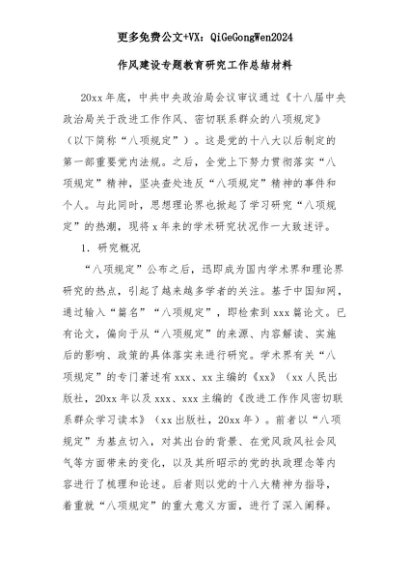 【七哥公文】2025年:作风建设专题教育研究工作总结材料+更多免费公文+VX:QiGeGongWen2024+更多免费公文+VX:QiGeGongWen2024