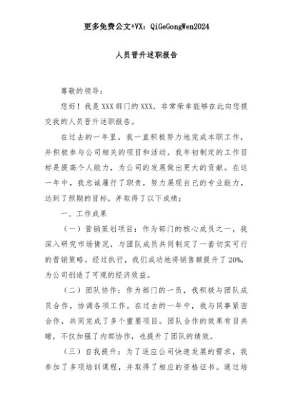 【七哥公文】2025年:人员晋升述职报告+更多免费公文+VX:QiGeGongWen2024+更多免费公文+VX:QiGeGongWen2024