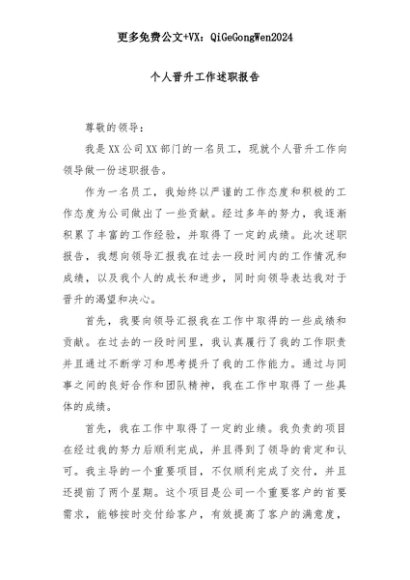 【七哥公文】2025年:个人晋升工作述职报告+更多免费公文+VX:QiGeGongWen2024+更多免费公文+VX:QiGeGongWen2024