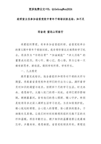 【七哥公文】2025年:政研室主任参加省委党校中青年干部培训班总结:知不足而奋进 望远山而前行+更多免费公文+VX:QiGeGongWen2024+更多免费公文+VX:QiGeGongWen2024