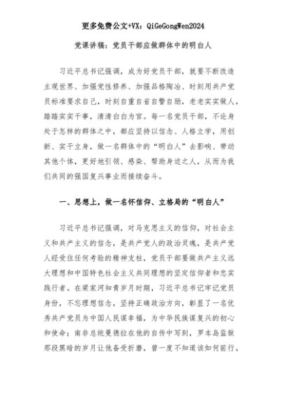 【七哥公文】2025年:党课讲稿:党员干部应做群体中的明白人+更多免费公文+VX:QiGeGongWen2024+更多免费公文+VX:QiGeGongWen2024