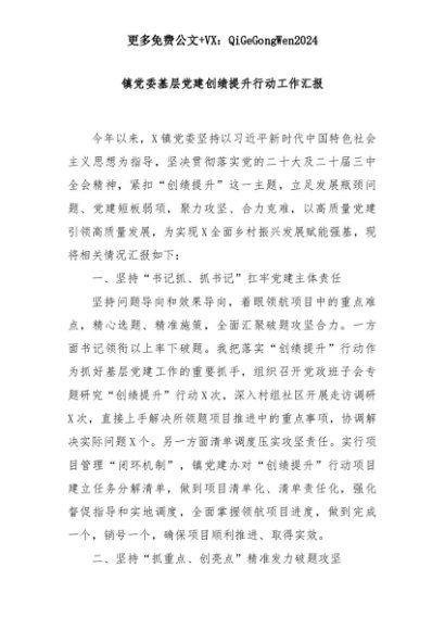 【七哥公文】2025年:镇党委基层党建创绩提升行动工作汇报+更多免费公文+VX:QiGeGongWen2024+更多免费公文+VX:QiGeGongWen2024