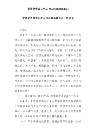 【七哥公文】2025年:市委宣传部部长在全市自媒体座谈会上的讲话+更多免费公文+VX:QiGeGongWen2024+更多免费公文+VX:QiGeGongWen2024