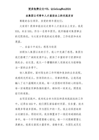 【七哥公文】2025年:在集团公司青年人才座谈会上的交流发言+更多免费公文+VX:QiGeGongWen2024+更多免费公文+VX:QiGeGongWen2024