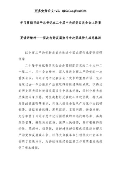 【七哥公文】2025年:学习贯彻习近平总书记在二十届中央纪委四次全会上的重要讲话精神——坚决打好反腐败斗争攻坚战持久战总体战+更多免费公文+VX:QiGeGongWen2024+更多免费公文+VX:QiGeGongWen2024