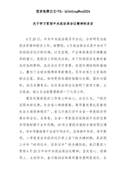 【七哥公文】2025年:关于学习贯彻中央政治局会议精神的发言+更多免费公文+VX:QiGeGongWen2024+更多免费公文+VX:QiGeGongWen2024