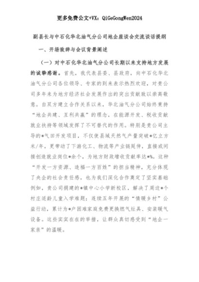 【七哥公文】2025年:副县长与中石化华北油气分公司地企座谈会交流谈话提纲+更多免费公文+VX:QiGeGongWen2024+更多免费公文+VX:QiGeGongWen2024