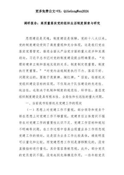 【七哥公文】2025年:调研报告:高质量落实党的组织生活制度探索与研究+更多免费公文+VX:QiGeGongWen2024+更多免费公文+VX:QiGeGongWen2024