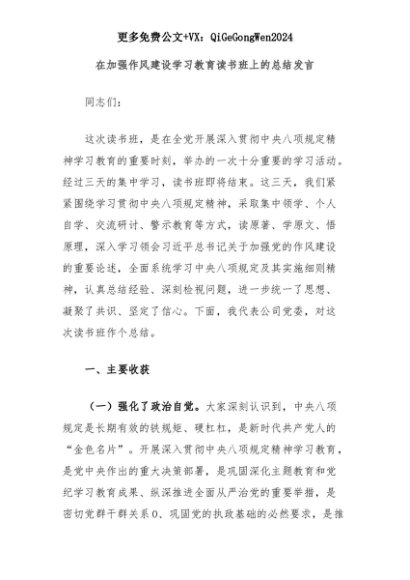 【七哥公文】2025年:在加强作风建设学习教育读书班上的总结发言+更多免费公文+VX:QiGeGongWen2024+更多免费公文+VX:QiGeGongWen2024