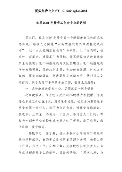 【七哥公文】2025年:在县2025年教育工作大会上的讲话+更多免费公文+VX:QiGeGongWen2024+更多免费公文+VX:QiGeGongWen2024