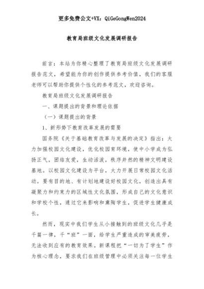 【七哥公文】2025年:教育局班级文化发展调研报告+更多免费公文+VX:QiGeGongWen2024+更多免费公文+VX:QiGeGongWen2024