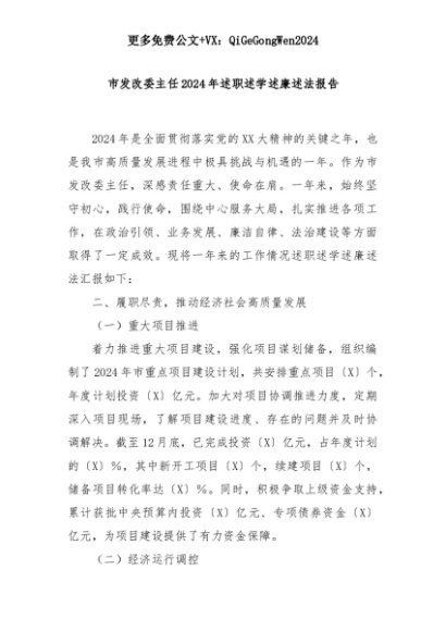 【七哥公文】2025年:市发改委主任2024年述职述学述廉述法报告+更多免费公文+VX:QiGeGongWen2024+更多免费公文+VX:QiGeGongWen2024
