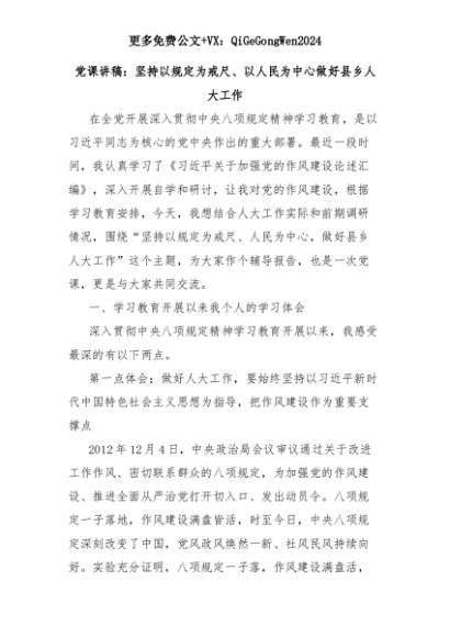 【七哥公文】2025年:党课讲稿:坚持以规定为戒尺、以人民为中心做好县乡人大工作+更多免费公文+VX:QiGeGongWen2024+更多免费公文+VX:QiGeGongWen2024