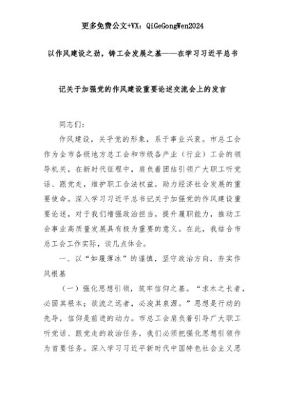 【七哥公文】2025年:以作风建设之劲,铸工会发展之基——在学习总书记关于加强党的作风建设重要论述交流会上的发言+更多免费公文+VX:QiGeGongWen2024+更多免费公文+VX:QiGeGongWen2024