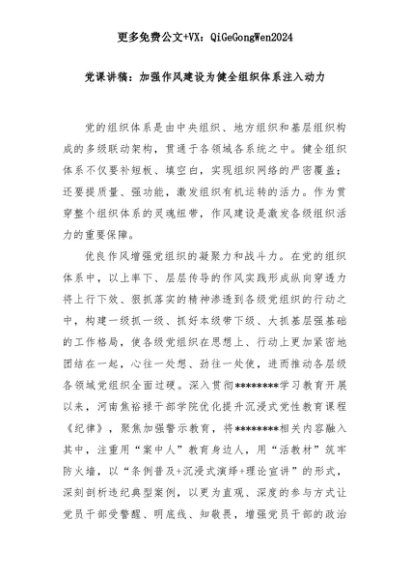 【七哥公文】2025年:党课讲稿:加强作风建设为健全组织体系注入动力+更多免费公文+VX:QiGeGongWen2024+更多免费公文+VX:QiGeGongWen2024