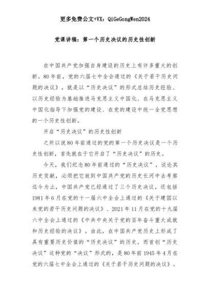 【七哥公文】2025年:党课讲稿:第一个历史决议的历史性创新+更多免费公文+VX:QiGeGongWen2024+更多免费公文+VX:QiGeGongWen2024