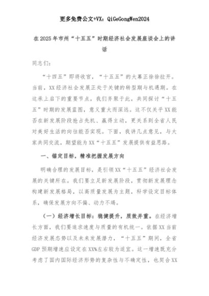 【七哥公文】2025年:在2025年市州“十五五”时期经济社会发展座谈会上的讲话+更多免费公文+VX:QiGeGongWen2024+更多免费公文+VX:QiGeGongWen2024